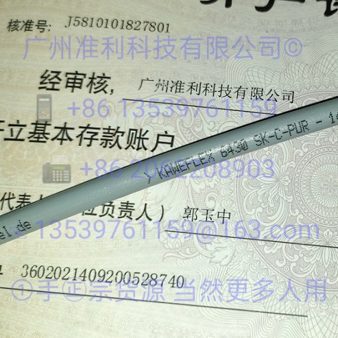 广州准利科技有限公司✆13539761159☎020-62208903✉13539761159@163.com㊣宗①手货源工厂㊕价供应KAWEFLEX 6430 SK-C-PUR拖链电缆,UL/CSA低电容,长行程,耐冷却液和润滑油,耐撕裂,PUR外皮,银灰色RAL7001,EMC电磁兼容由镀锡铜丝纺织网层包履约85%,DIN 47100 PELON®2芯线绝缘,柔性纯铜丝DIN VDE 0295-60228/6,无卤型高柔性屏蔽数据传输电缆KAWEFLEX 6430 SK-C-PUR - 14X0,34 mm² E347277 cURus AWM STYLE 20233 80℃ 300V适用于需要高速频繁移动的所有机械工业、机器领域及所有高速可移动机器部件,以下为tkd-kabel KAWEFLEX 6430 SK-C-PUR EMC兼容型号和规格,部份型号有少量备件。
